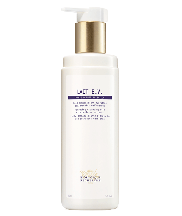 A make-up remover that moisturizes and protects at the same time, Lait EV is completely in harmony with the epidermis. Its active ingredients maintain the integrity of the barrier function and protect the skin from drying out. In addition to providing nourishment and elasticity, the cleansing milk gently removes impurities from the skin, while maintaining the skin's water levels. The skin is cleansed and healthy. Recommended for dehydrated skin conditions that have lost their vitality.