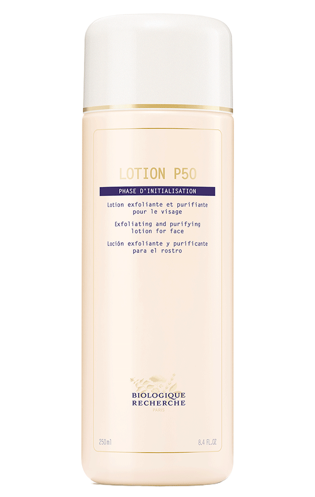 Every treatment with Biologique Recherche, at home or in a beauty salon, includes the application of Lotion P50. P50 lotions gently exfoliate, balance excess sebum, moisturize and help maintain the skin's acidic pH.