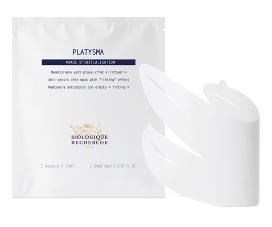 With its unique shape and elastic fabric tailored to the area under the chin, Platysma combines the benefits of an anti-gravity and anti-ptosis mask in one step. The supporting, mechanical action combined with firming active ingredients resembles a facial massage and offers a "lifting" effect to tighten the skin. The contours of the face are redefined, its volumes are more harmonious, and the jaw line is visibly altered, revealing a sublimated oval. Skin conditions with loose contours.