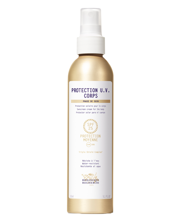 An innovative combination of 100% natural filters, Protection UV Corps SPF 25 effectively protects the skin from the sun. With Triple Shield Complex© technology targeting 100% of the sun's range [UVA + UVB + visible light + infrared], it preserves the skin's solar capital. In addition, its formula, rich in moisturizing and regenerating active ingredients, helps prevent skin aging and dehydration. Waterproof. Photostable. Tested under dermatological control.